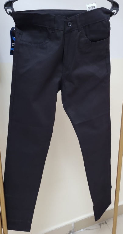 Pantolon, düz siyah vücut hatlarını belli etmeyen üzerinde üstünde herhangi bir marka amblemi olmayacak. Keten, keten kot ve eşofman tarzında ve yandan cepli olacak.